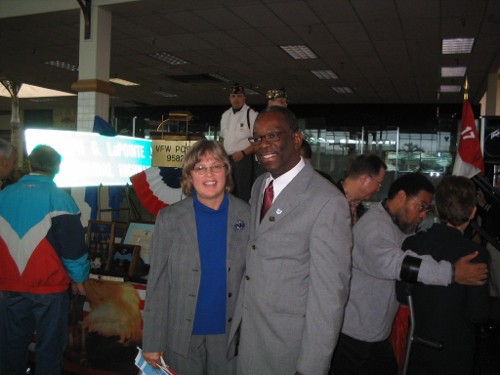 Cindy LaPointe Dafler & Joseph Guy LaPointe III with Medal of Honor Flag