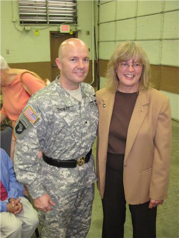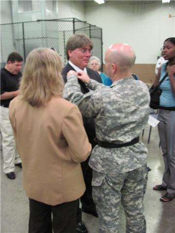 Cindy LaPointe Dafler watches BG Richard W. Thomas pin 101St Airborne Division
